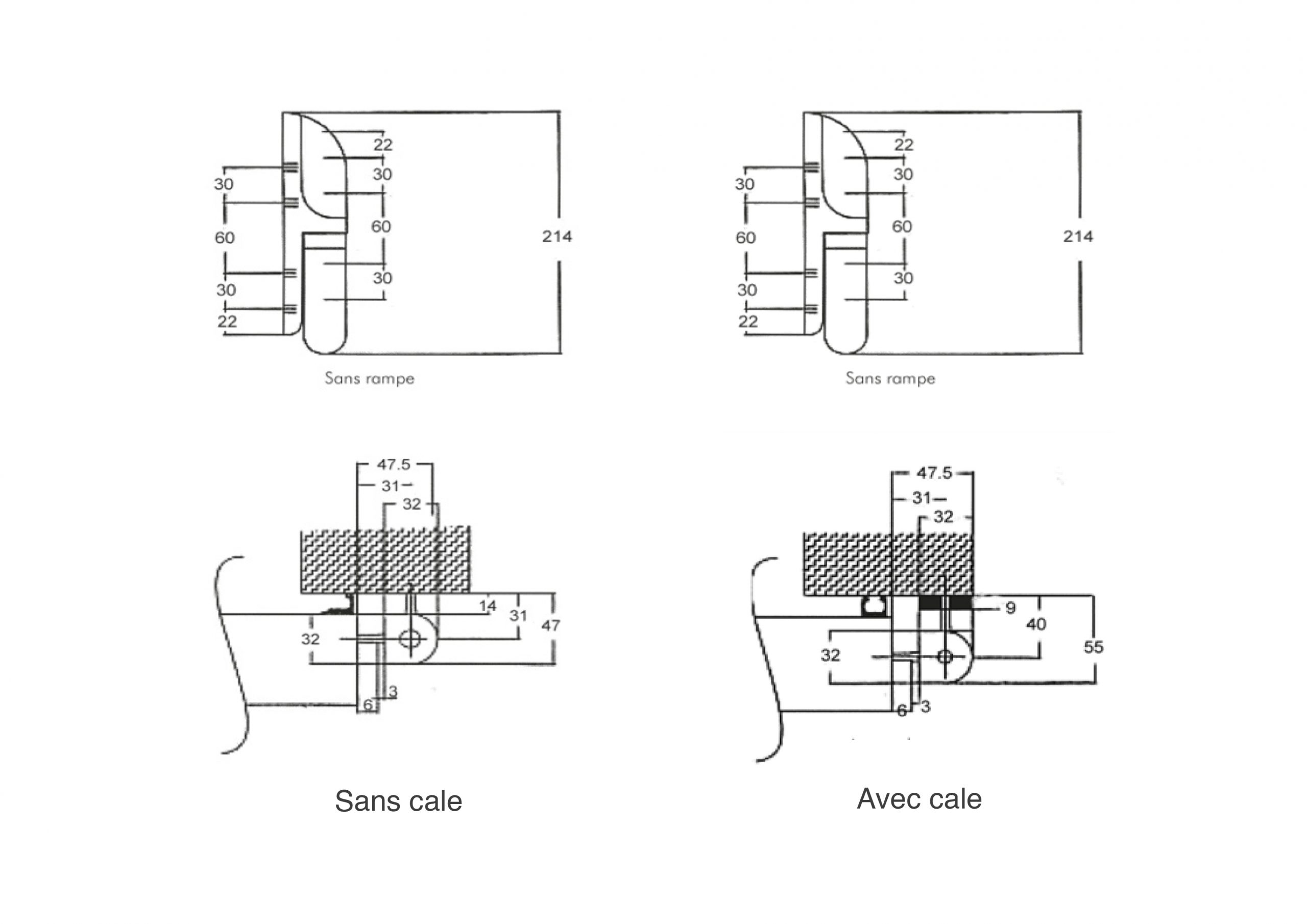 – Pour portes pivotantes en surépaisseur;
